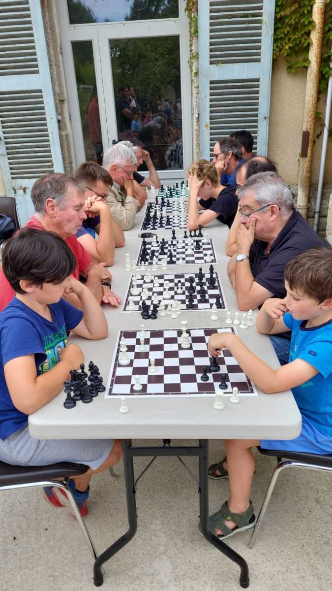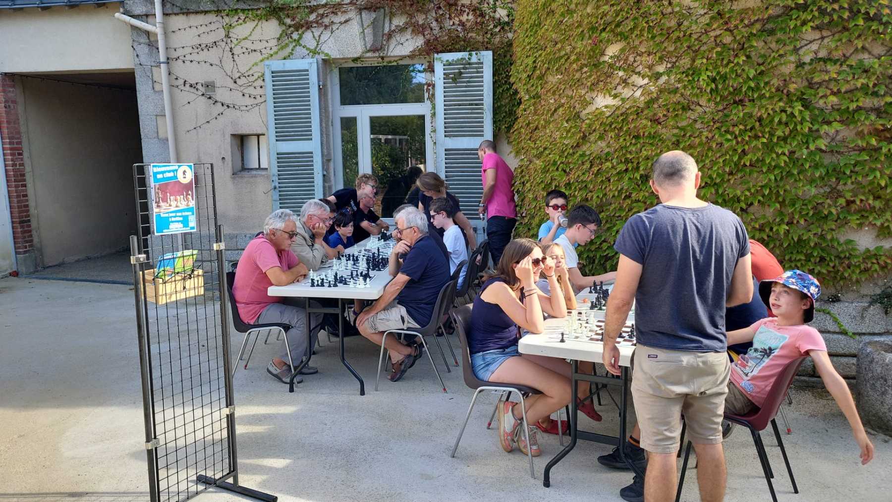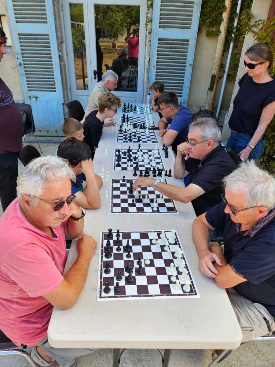 Jeudis de l’été 2025 EchecsMuzillac 30 août 2025 in Club - 0 Minutes Grosse affluence sur le spot du Club d’Echecs de Muzillac. Concentration et bonne humeur en plein air, le combo gagnant. Une réflexion va être menée pour jouer en plein air tout l’été.
